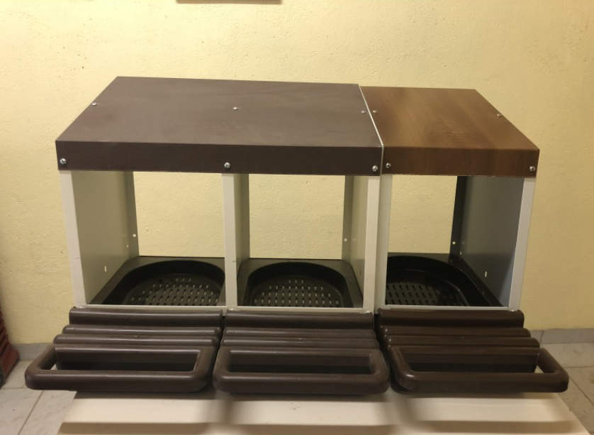 Pondoir 3 cases idéal pour 13 à 18 poules, conçu en métal avec un tiroir plastique pour un entretien facile.